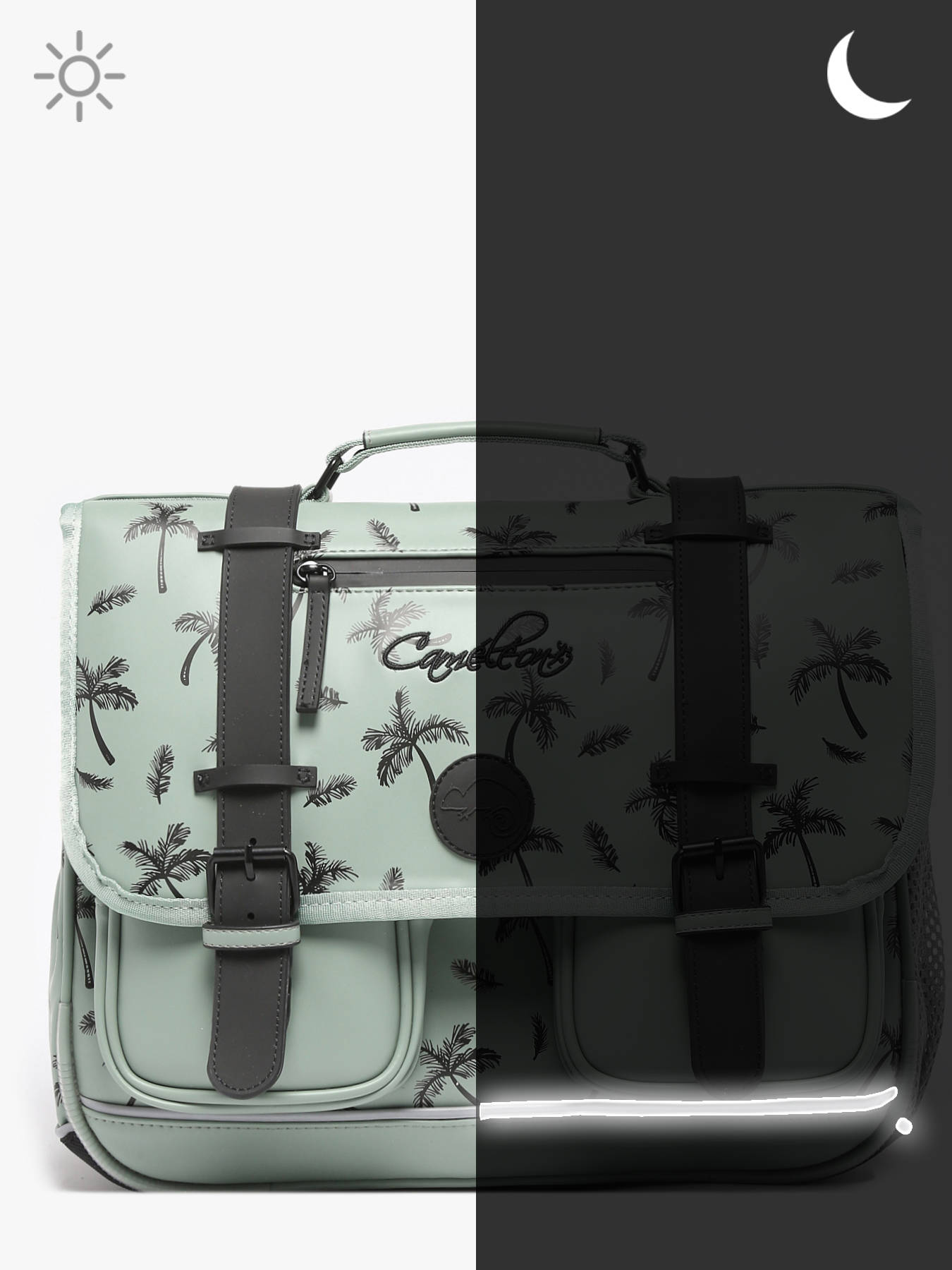 38 cm - 18 liters - 1.5 kg ~ 38 cm primary schoolbag by Cameleon from the Vintage North line. This schoolbag is perfect for first and second grade. We love the beautiful vintage touches with its finishings and its zipped pocket on the flap! It is divided into two large compartments for all your school stuff. Functional, it has a small zipped pocket, a special ruler compartment and two zipped pockets on the front of the schoolbag. A little extra, this schoolbag has a name tag. Ergonomic, the handle and the bottom of the schoolbag are reinforced. Very comfortable, the back and shoulder straps are padded. This schoolbag is waterproof. For safety, there are reflective strips around the child's schoolbag. A little extra, a ruler is offered!