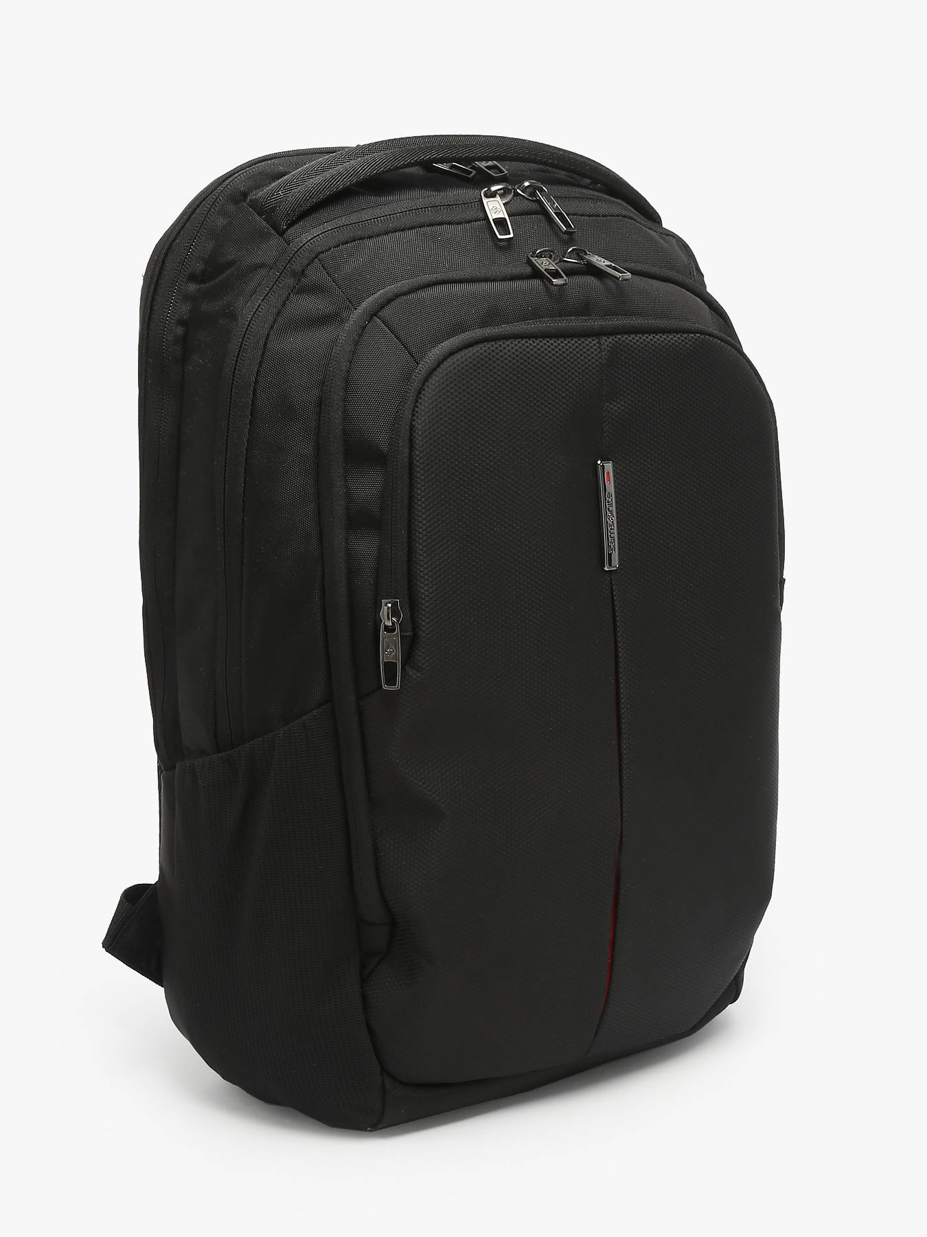 Le sac à dos business 17.3” Guardit 3.0 de Samsonite incarne l’équilibre parfait entre design moderne, fonctionnalité professionnelle et respect de l’environnement grâce à sa conception en polyester recyclé et son revêtement résistant à l’eau. Léger (0,8 kg) et spacieux (32 x 48 x 20,5 cm – 27,5 L), il répond aux besoins des professionnels en déplacement. Il comprend 4 compartiments intelligemment organisés : un compartiment arrière renforcé pour un ordinateur jusqu’à 17,3” et une tablette 10.5”, un espace pour documents A4, et deux poches zippées avant pour les petits accessoires. L’extérieur est conçu pour le confort : bretelles moelleuses et réglables, panneau arrière matelassé avec textile ventilé, poignée haute épaisse, fond moussé, passant trolley et 2 poches porte-bouteille latérales. Un QR code permet l'identification de la garantie de 2 ans. Guardit 3.0 conserve les atouts de la gamme tout en gagnant en modernité.