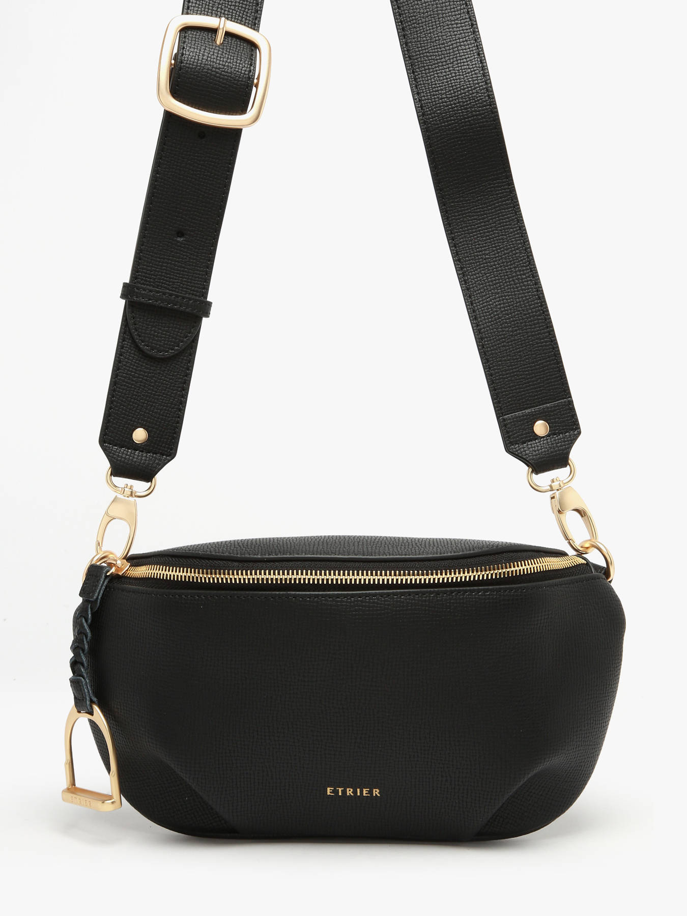 Le sac banane TORSADE par Etrier est conçu en cuir de vachette texturé, sublimé par une tresse élégante qui tombe délicatement sur le sac et se termine par un bijou raffiné. Sa fermeture zippée assure une sécurité optimale pour vos effets personnels. Il dispose d'une bandoulière réglable et amovible, offrant un port en bandoulière ou à la poitrine selon vos envies. À l'intérieur, un compartiment principal spacieux comprend une poche simple et une poche zippée pour organiser vos essentiels avec praticité. Ce sac banane allie style contemporain et fonctionnalité, parfait pour un usage quotidien avec une touche d'élégance. La ligne Torsade exprime un design moderne, chic et intemporel, idéal pour celles qui recherchent à la fois confort et raffinement dans un accessoire compact.
