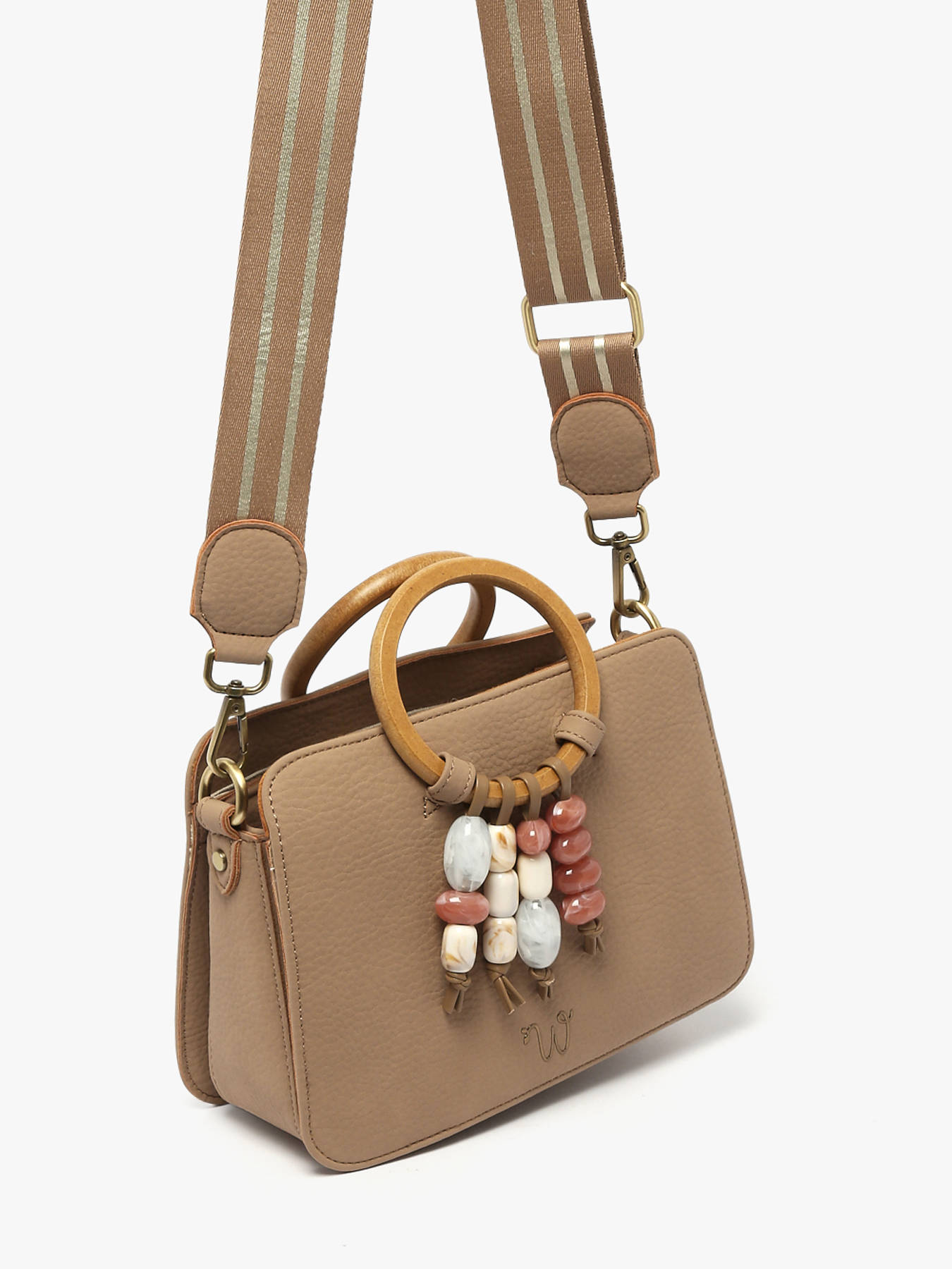 Le sac bandoulière WOOMEN format S de la ligne Camomille Pearl se distingue par ses franges perlées délicates, pièce maîtresse du design, associées à des anneaux en bois, pour un esprit champêtre à la fois élégant et contemporain. Confectionné en polyuréthane composé de 58% de matières recyclées avec doublure en coton et lin, il allie légèreté et robustesse pour un usage quotidien. Ses trois compartiments, dont celui du milieu zippé, sa poche zippée intérieure et sa poche extérieure au dos, permettent une organisation optimale de vos effets personnels. La bandoulière irisée, réglable et amovible, assure un porté modulable selon vos envies, tandis que les fermetures aimantées sécurisent vos affaires. Le logo en résine dorée vient parfaire le modèle d’une touche raffinée. Avec ses finitions soignées, ce sac devient un accessoire unique, pratique et stylé, idéal pour compléter toutes vos tenues, des plus décontractées aux plus habillées.