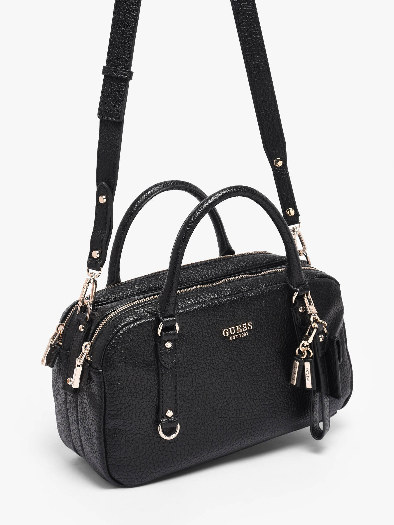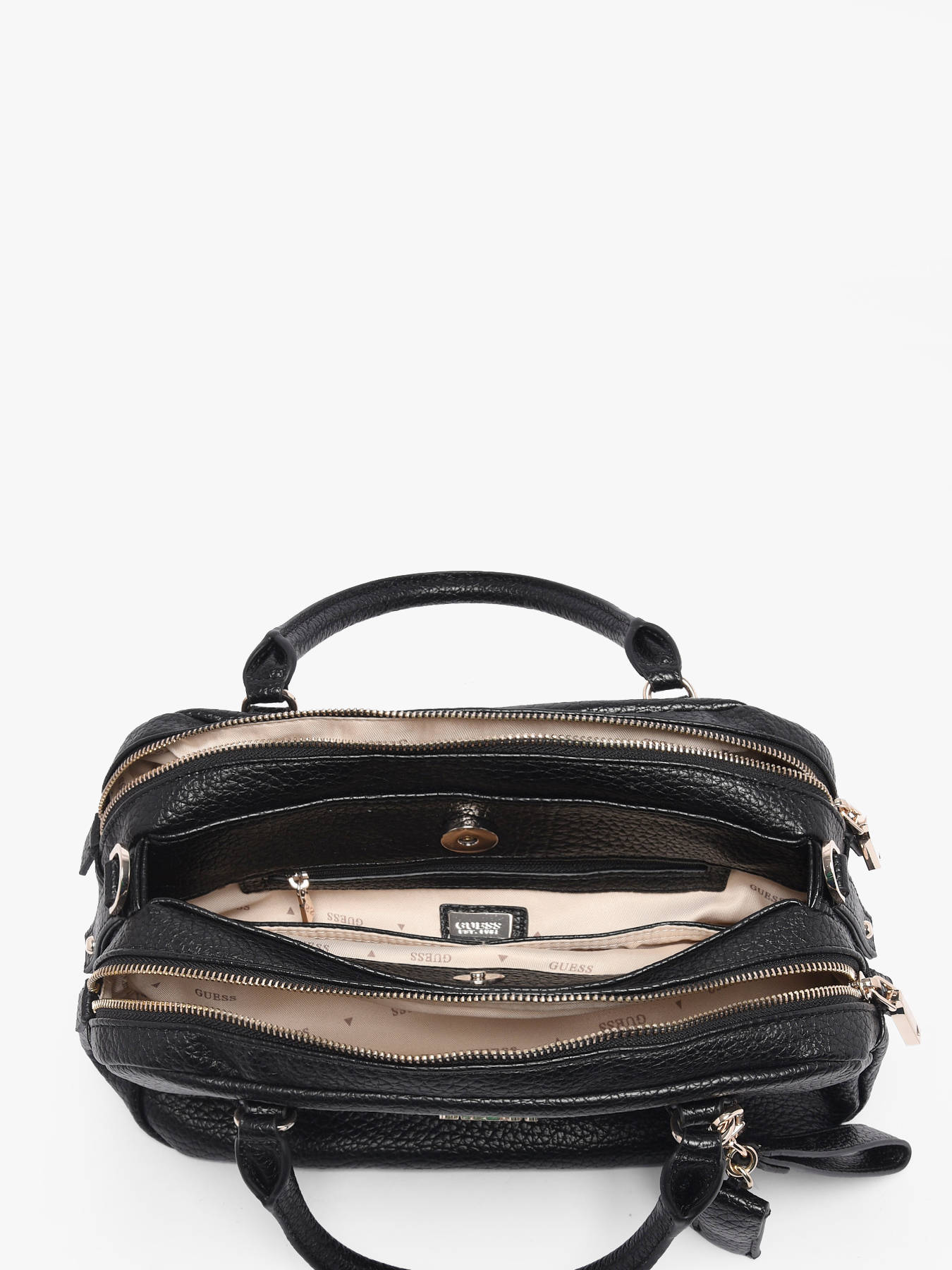 The MARSHA LOGO GUESS handheld bag in P.U combines elegance and practicality. On the outside, it features a double magnetic and zip closure for enhanced security. Its 10 cm handle allows comfortable hand carrying, while the adjustable and removable shoulder strap offers the option to wear it crossbody according to your preference. Inside, this bag has three separate compartments, perfect for organizing your belongings carefully, as well as two simple pockets and one zippered pocket to securely store your small essentials. Versatile and stylish, the MARSHA LOGO GUESS bag is ideal to accompany your daily life with chic.