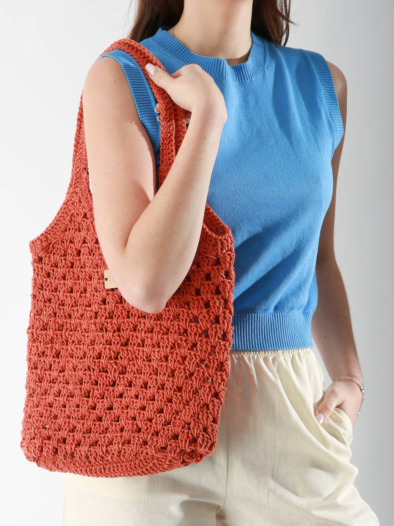 The WOOMEN shoulder bag from the STRELITZIA line, made of cotton, is perfect for daily use. Crafted with artisanal expertise, it highlights the crochet technique, adding an authentic and trendy touch. Designed to be worn over the shoulder, it features a single spacious compartment, combining simplicity and practicality to carry your essentials with style and comfort.