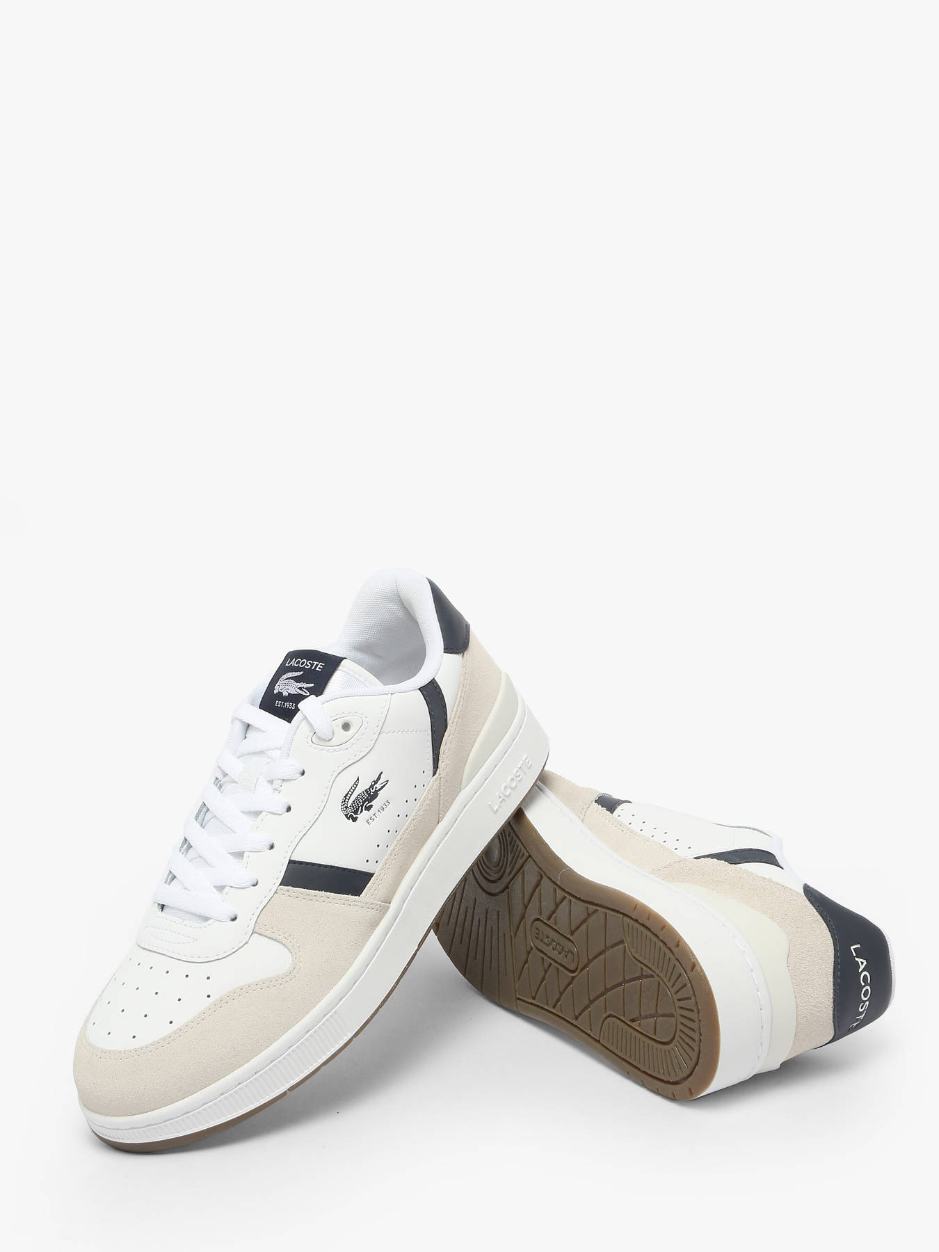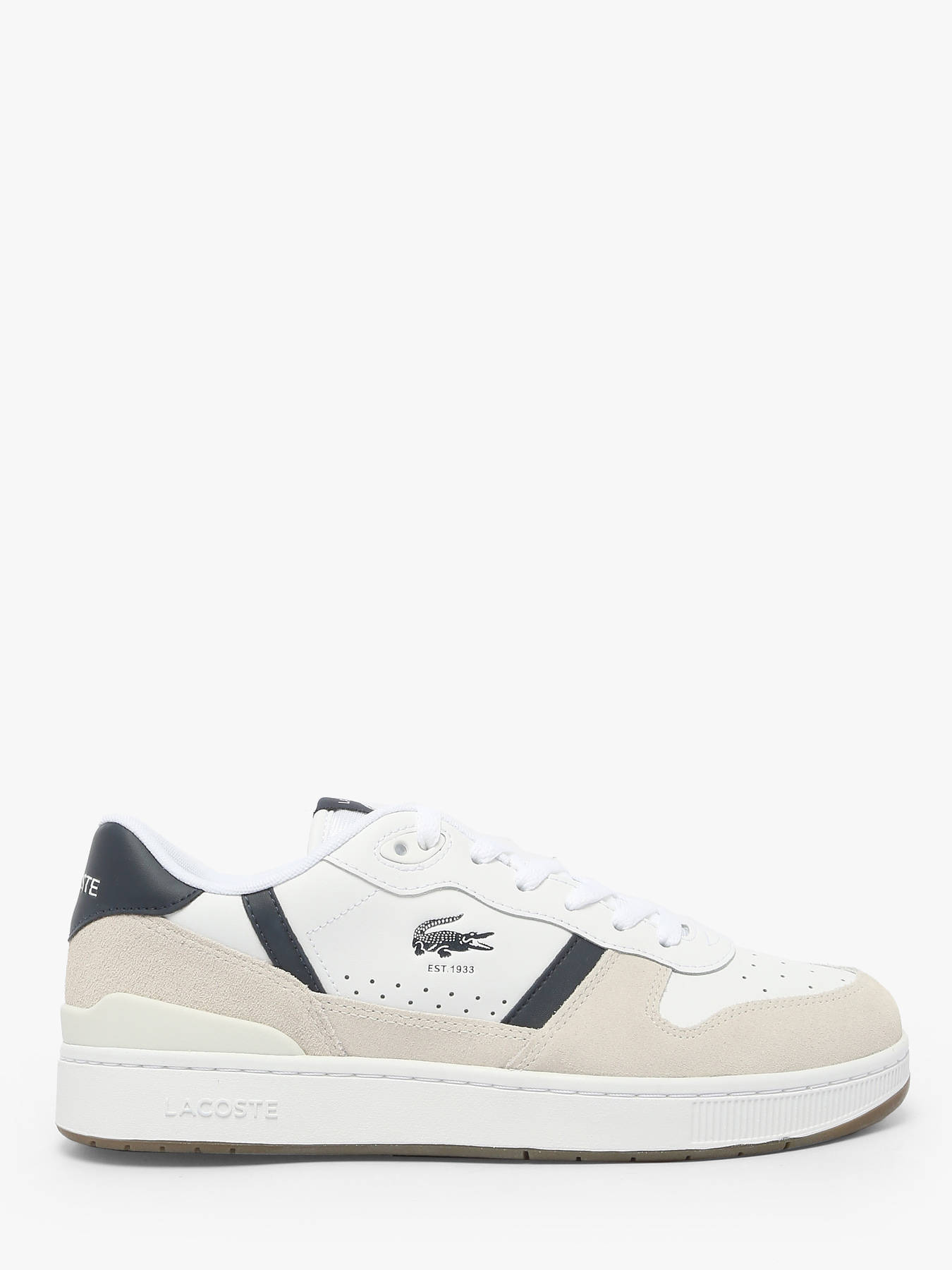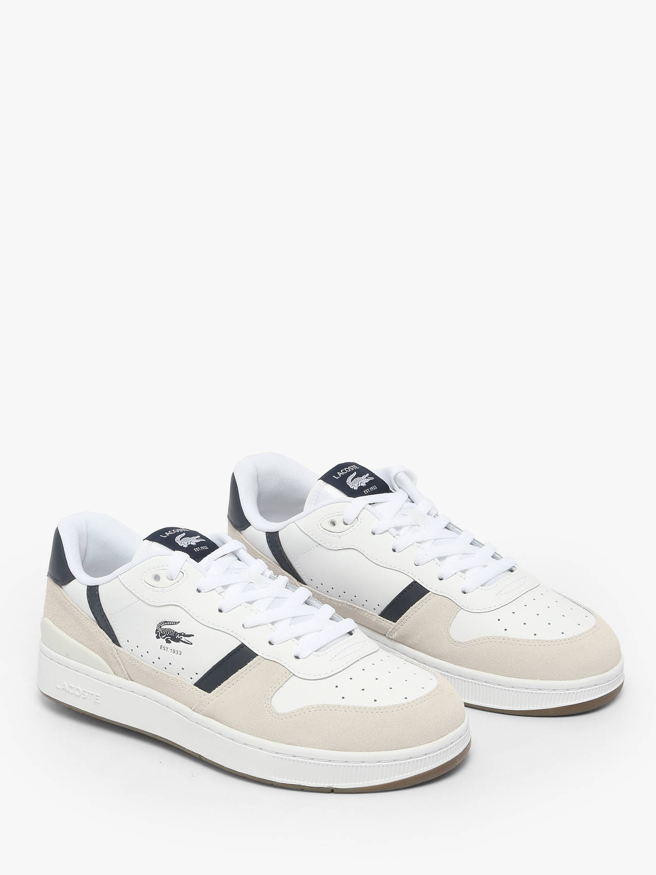 Les sneakers T-Clip Set de LACOSTE revisitent avec style l’héritage tennis des années 1980. Leur tige en cuir blanc, agrémentée d’empiècements suédés marine et de détails vintage raffinés, offre un look rétro chic et authentique. Le crocodile débossé au centre signe l’élégance emblématique de la marque. À la fois sportives et sophistiquées, ces sneakers allient confort et allure pour un style urbain intemporel, parfait en toute occasion.