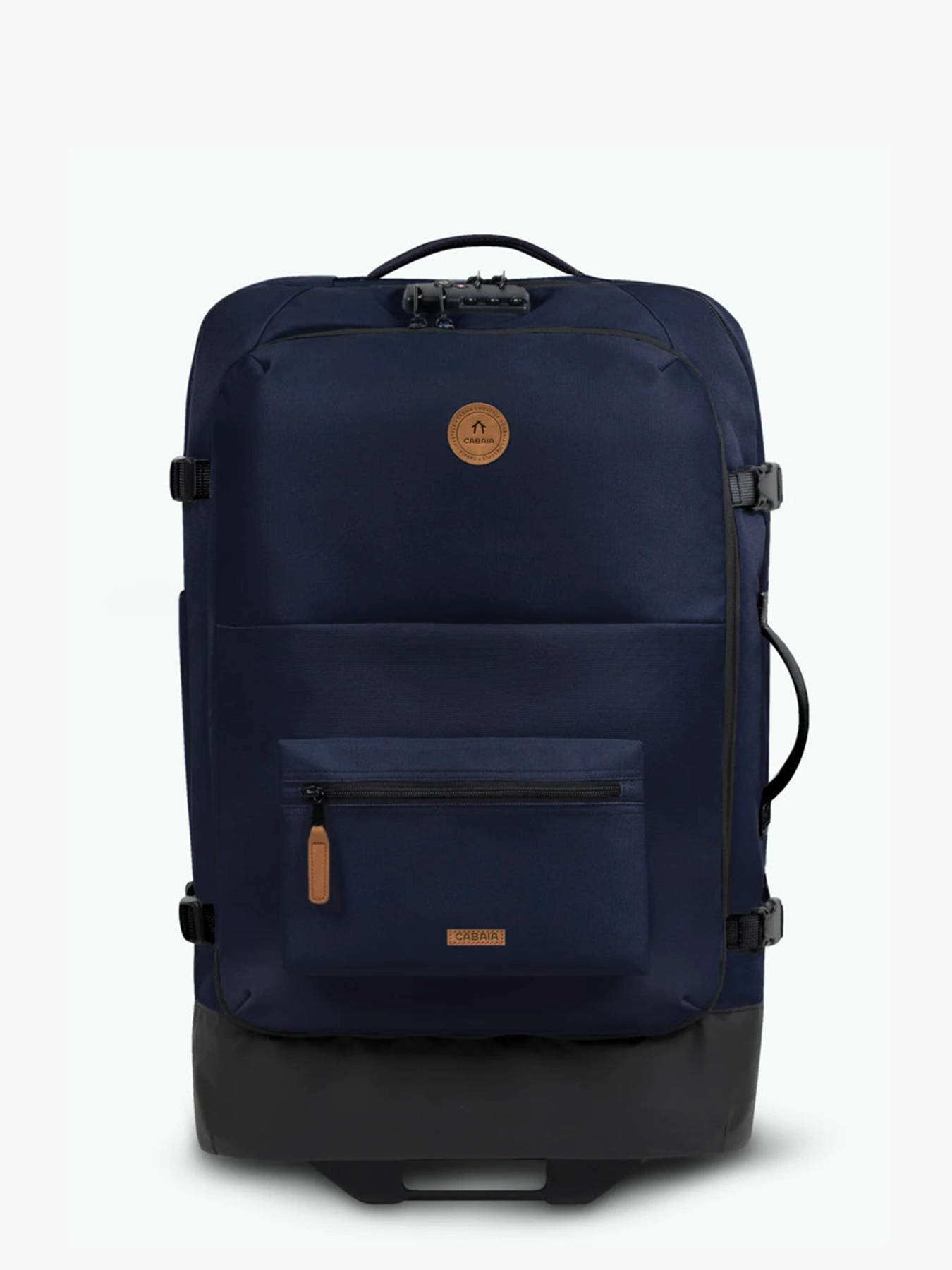 Travel smarter with the Cabaia 2-wheel soft-shell suitcase, built for organized adventurers. Crafted from recycled, vegan, water-repellent materials, it offers both durability and sustainable design. With a generous 75 L capacity, it's ideal for extended trips. Smooth handling is guaranteed thanks to its replaceable wheels, telescopic handle, and side/top carry handles. For added protection, an integrated TSA lock keeps your belongings safe. The exterior features a quick-access front opening, a water bottle pocket, and a MOLLE system to attach modular pouches. A large zipped front pocket adds even more functionality. Inside, you'll find a double compartment layout with compression straps and a laptop sleeve suitable for all sizes. Practical, versatile, and thoughtfully designed, this suitcase is ready to follow you wherever you go—with both comfort and modern style.