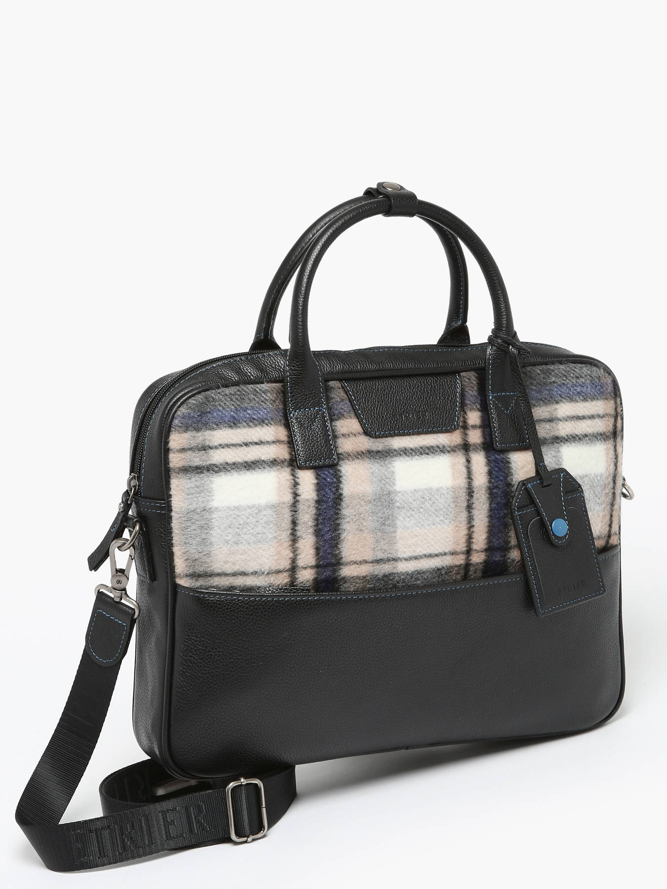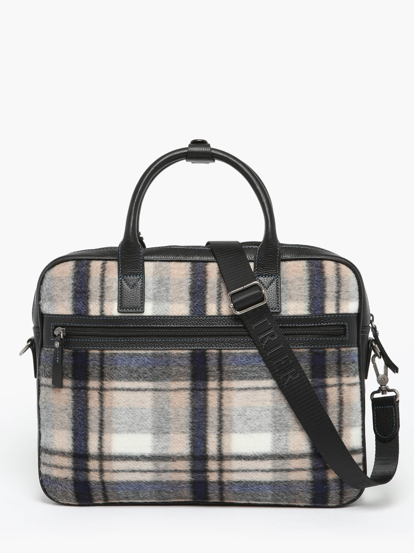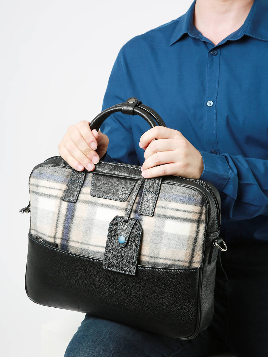 Ce porte-document moderne réalisé en flanelle imprimé Tartan est la pièce mode qu’il vous faut cette saison. A la fois pratique et tendance, il sera parfait pour transporter vos documents, ainsi qu’un PC 14 pouces. Son coloris neutre lui offre une allure chic et intemporelle. Garni de cuir, c’est un modèle de qualité, garant de notre savoir-faire maroquinier.