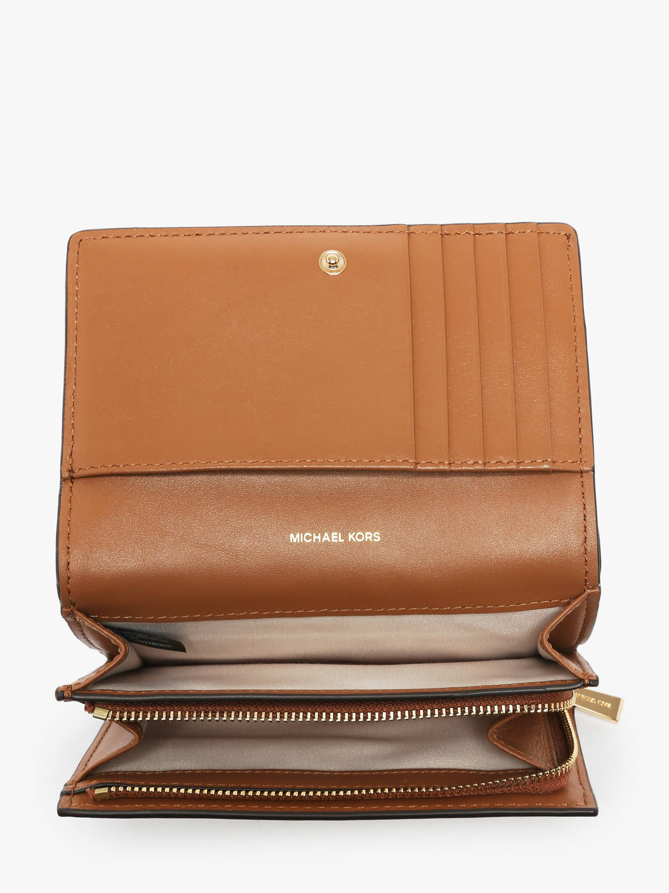 Ce portefeuille MICHAEL KORS en toile enduite allie style moderne et organisation optimale. Son design épuré et féminin est accentué par un rabat à pression qui protège l’intérieur tout en offrant un accès rapide. Pratique et bien pensé, il dispose de deux poches principales, d’une poche avant et d’une poche au dos pour garder à portée de main cartes ou reçus. À l’intérieur, vous trouverez cinq emplacements pour cartes bancaires, une poche pour les billets et une poche zippée idéale pour la monnaie ou les petits objets. Son format compact permet de le glisser facilement dans un sac ou de le porter à la main pour les sorties rapides. Un accessoire chic et fonctionnel au quotidien.