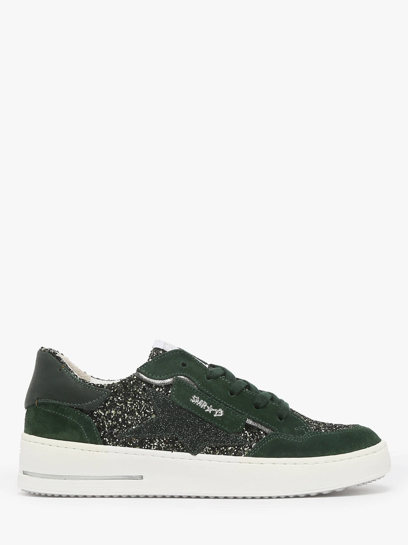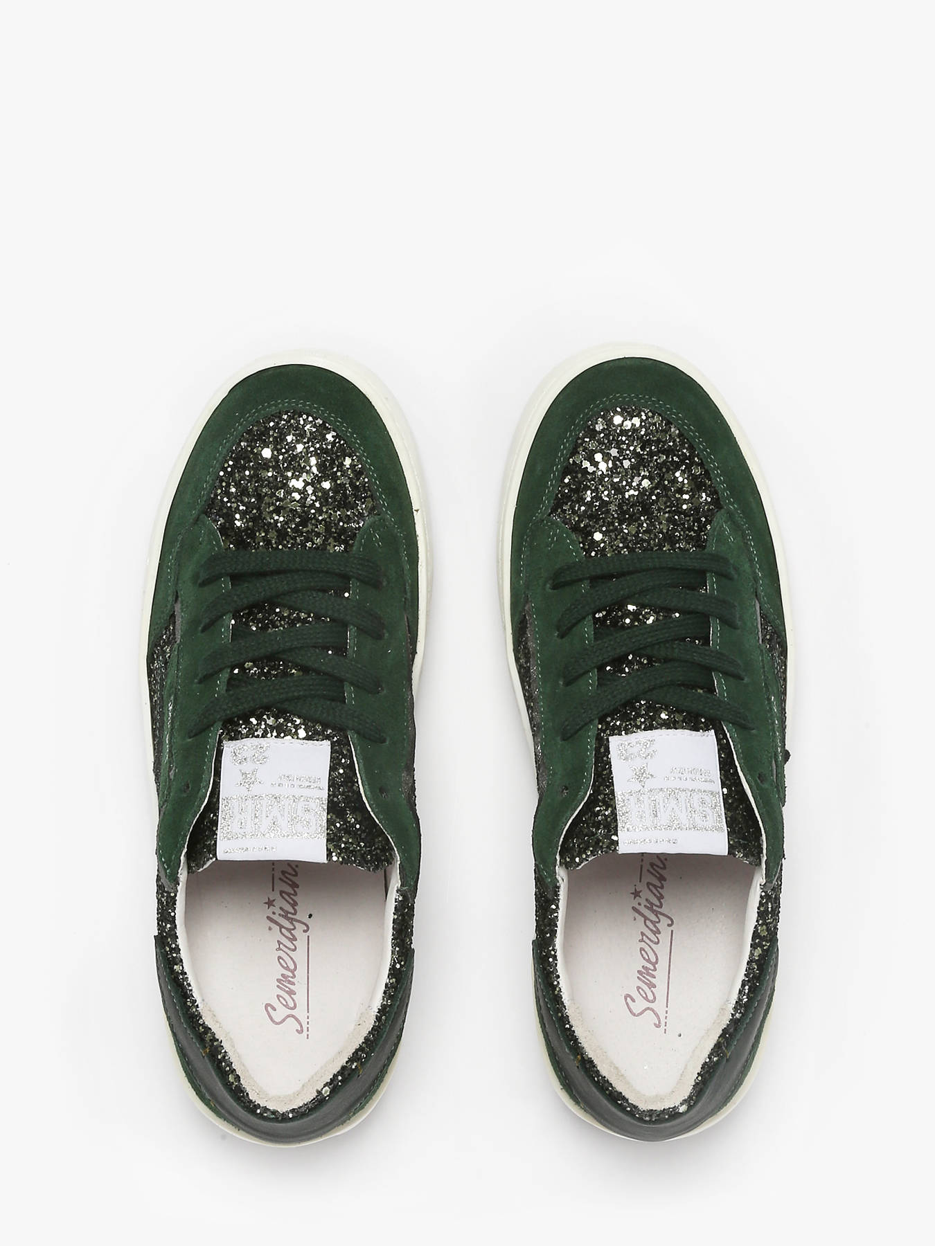 Avec leur design audacieux et raffiné, les sneakers ALE de Semerdjian sont une véritable déclaration de style. Leur dessus en cuir noir est rehaussé par une étoile satinée emblématique, apportant une touche élégante et subtilement brillante. Les lacets pailletés ajoutent une note glamour et originale, idéale pour celles qui aiment se démarquer. L’intérieur en cuir et synthétique offre un confort premium, tandis que la semelle intérieure en cuir, amovible, permet un ajustement personnalisé. Fermées par lacets, elles allient parfaitement style et fonctionnalité. Que ce soit pour une tenue casual chic ou un look plus audacieux, ces sneakers incarnent l’esprit tendance et affirmé de la marque Semerdjian.
