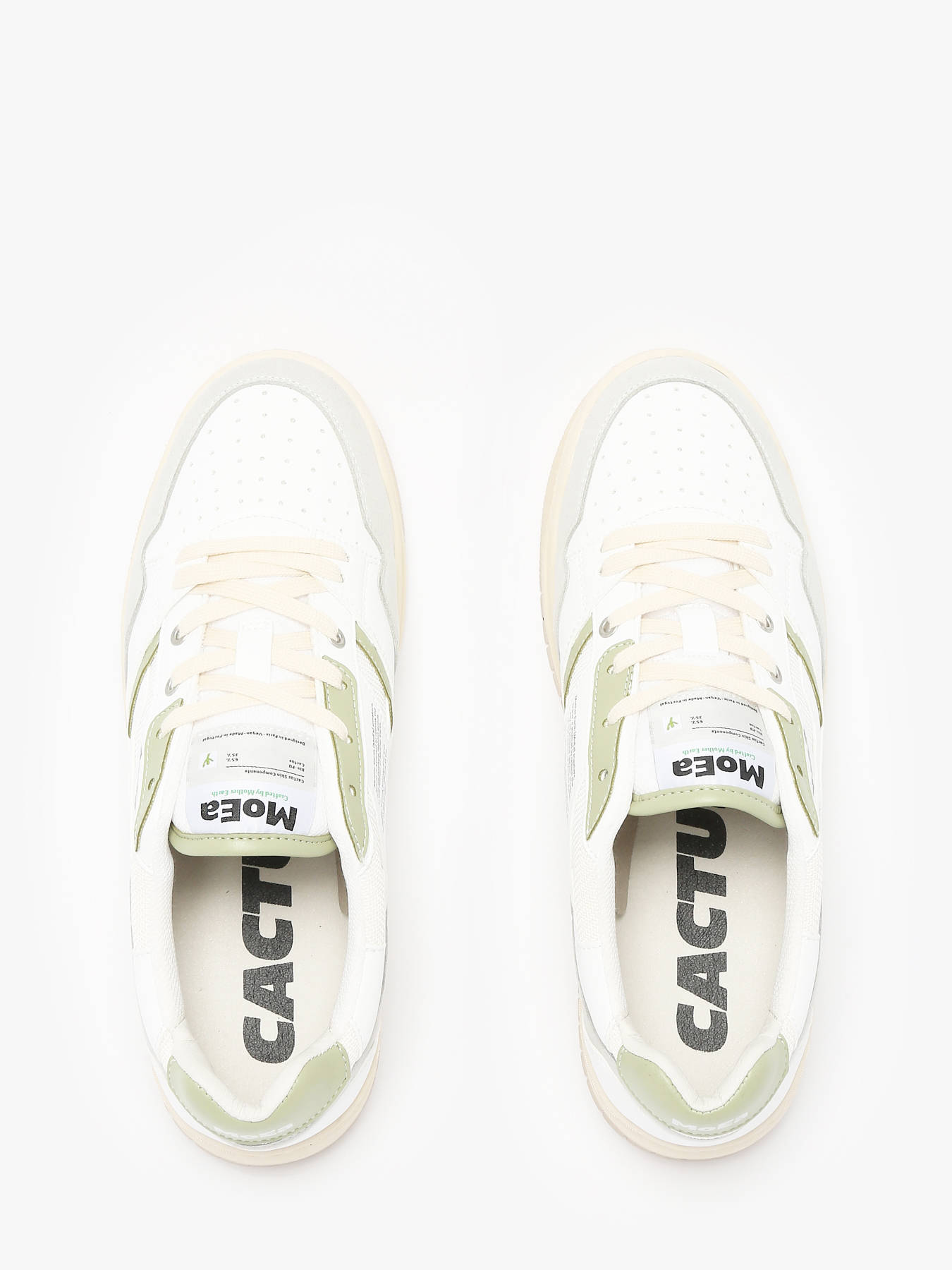 Les bio-sneakers GEN2 Cactus White & Aloe de MoEa mélangent esthétique rétro et durabilité moderne. Avec leur silhouette inspirée des années 80, ces sneakers présentent une semelle épaisse, mais légère, offrant confort et style pour les environnements urbains. Confectionnées à partir de cactus nopal, elles sont 100% végétaliennes, certifiées par PETA, assurant qu'aucun animal n'a été impliqué dans leur fabrication. Fabriquées en Europe, ces sneakers utilisent des matériaux recyclés et sont conçues de manière équitable, avec une empreinte carbone minimale. La semelle extérieure est en caoutchouc, la doublure en polyester recyclé, et les lacets sont réalisés en coton biologique et recyclé, reflétant un engagement fort envers l’éthique et l’environnement. Les GEN2 Cactus White & Aloe allient confort, style vintage et respect de la planète, pour une chaussure à la fois moderne et responsable.